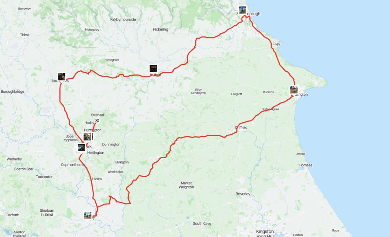Setting out early morning, Robbie made it back in one piece despite a bad start when he was knocked off his bike in York!
